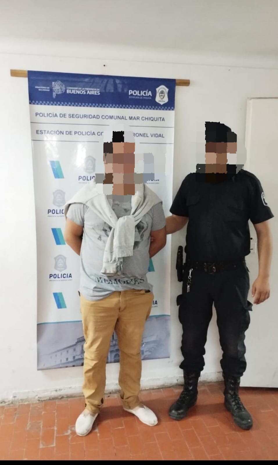 Efectivos de la Comisaría Primera de Coronel Vidal, en colaboración con personal de la Comisaría de la Mujer, la Sub estación de General Pirán y el Puesto de Vigilancia de Vivoratá encabezaron el procedimiento de requisa y secuestraron un teléfono celular, tres remeras, unabermuda, una visera, y procediéndose a la detención del mismo.- Asimismo en su lugar de trabajo, se secuestra una remera, una bermuda y una visera.