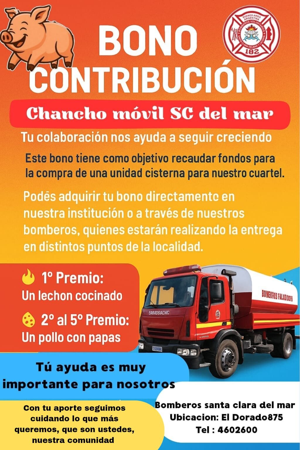 El Cuerpo de Bomberos Voluntarios de Santa Clara del Mar lanzó una campaña de recaudación con bono contribución, destinada a financiar la compra de una cisterna para el camión de abastecimiento. La iniciativa, denominada “Chancho Móvil SC del Mar”, se presentó públicamente con recorridas por instituciones y barrios, y premios para quienes colaboren.