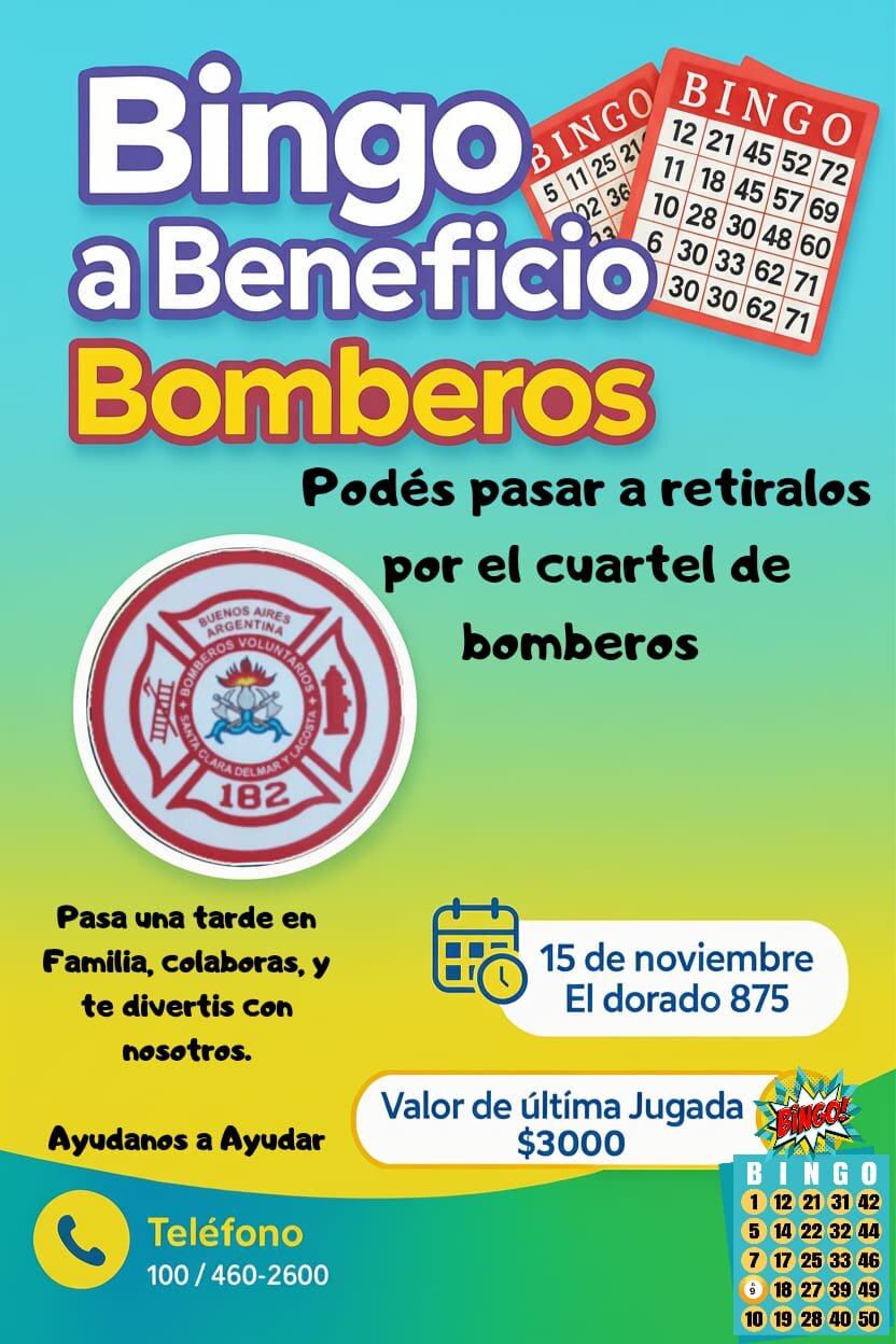 El Cuartel de Bomberos de Santa Clara del Mar, confirmó la realización de un bingo solidario con el objetivo de recaudar fondos para la institución. El evento se llevará adelante el sábado 15 de noviembre en El Dorado 875, con entrada libre y participación abierta a toda la comunidad.