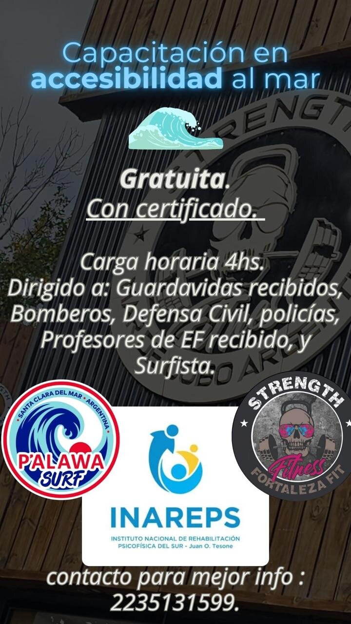 El Instituto Nacional de Rehabilitación Psicofísica del Sur (INAREPS) anunció una capacitación sobre accesibilidad y asistencia a personas con discapacidad en el ámbito playero. La actividad se llevará a cabo el jueves 4 de diciembre, de 9 a 13 horas, en el Gimnasio Fortaleza Fit de Mar de Cobo, Partido de Mar Chiquita.