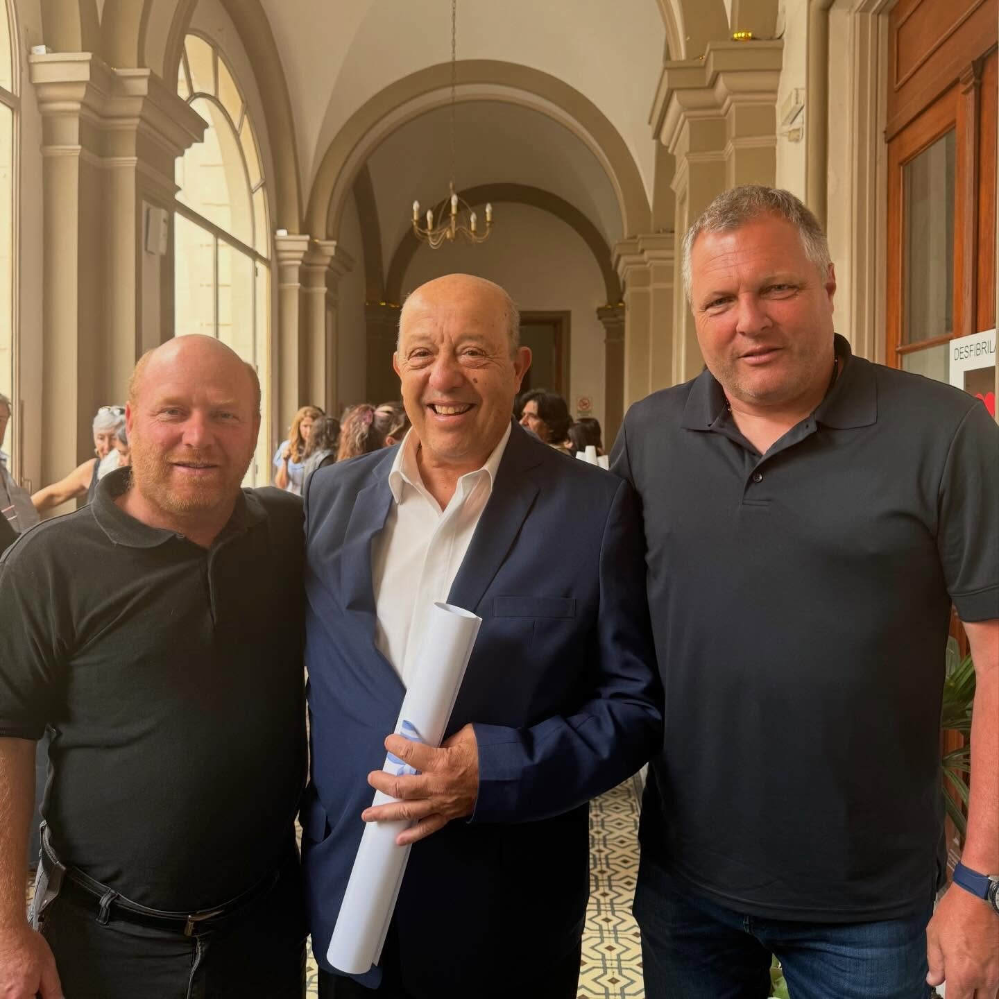 El intendente Walter Wischnivetzky, los delegados Fabián Jacquet y Matías Jara, el presidente del Concejo Deliberante, Carlos Minnucci, y el presidente del bloque de Unión por la Patria, Pablo Prefumo, entre otros, acompañaron desde el palco y corearon el nombre del dirigente de General Pirán, que juró “la memoria de su padre y su bandoneón”.