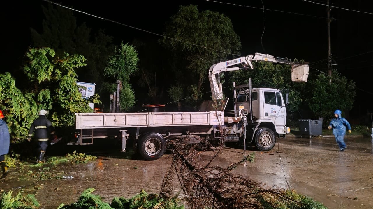 Defensa Civil, Bomberos y la Cooperativa Arbolito trabajaron en un operativo especial tras los daños registrados durante la tormenta.