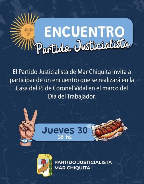 En el marco del Día del Trabajador, la agrupación Renacer Peronista informó la realización de un encuentro en su sede de Mar de Cobo, donde convocó a afiliados, militantes y vecinos a compartir un guiso de lentejas como parte de las actividades por el 1° de Mayo.