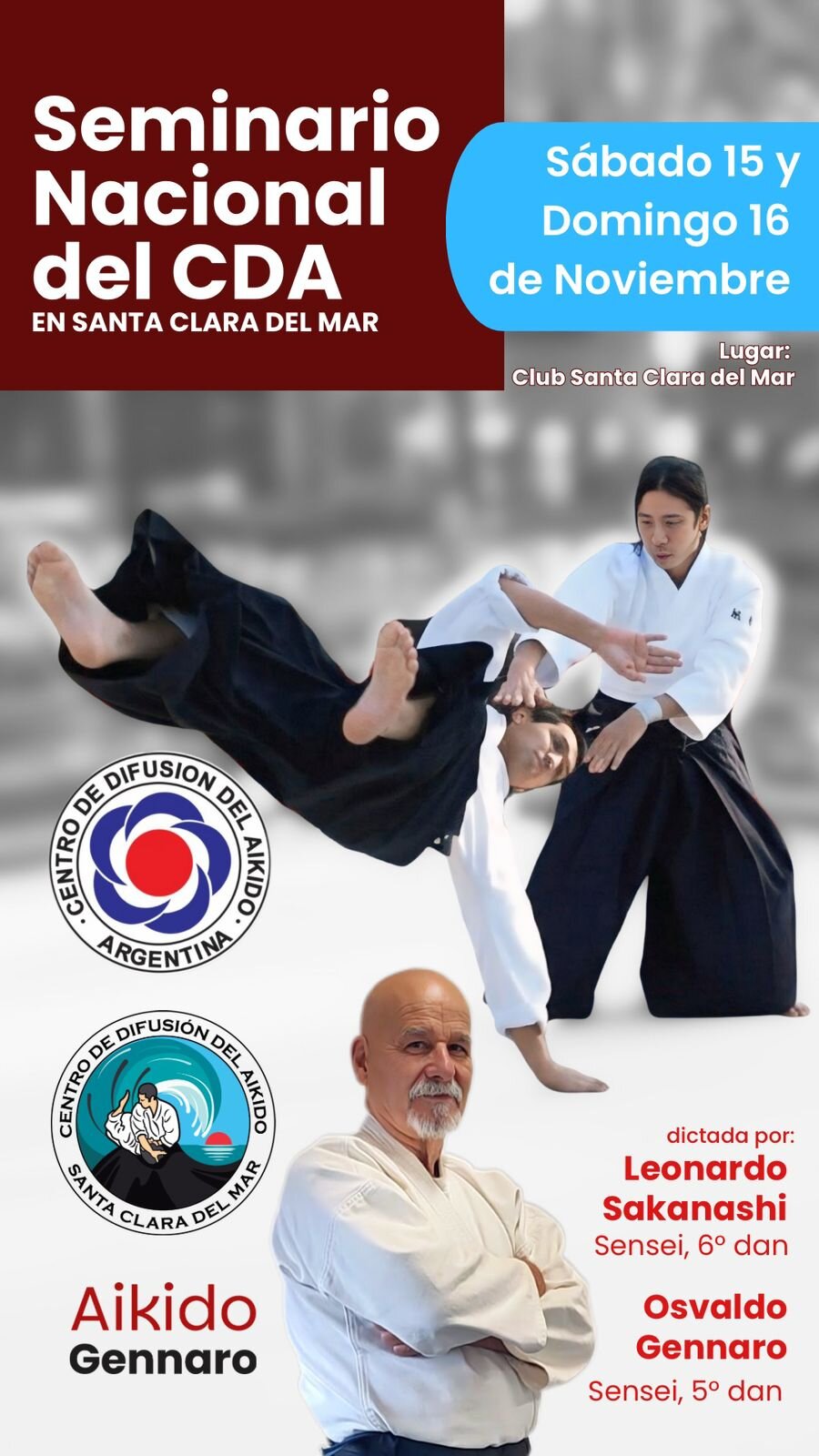 Los días sábado 15 y domingo 16 de noviembre se desarrollará en Santa Clara del Mar el Seminario Nacional del Centro de Difusión del Aikido, que por tercera vez consecutiva tendrá lugar en la ciudad. La actividad contará con la presencia de dos referentes de trayectoria internacional: Sensei Leonardo Sakanashi (6° dan) y Sensei Osvaldo Gennaro (5° dan), quienes dictarán las clases técnicas durante ambas jornadas.