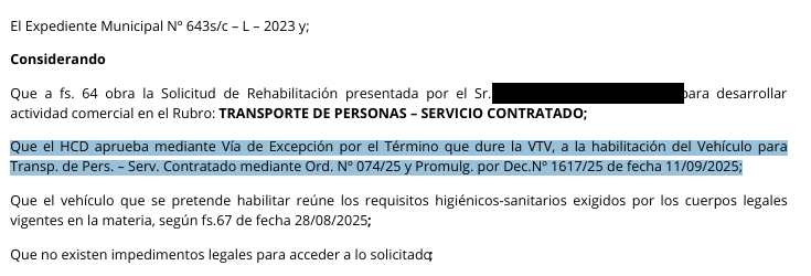 Posteriormente, el expediente ingresó al Concejo Deliberante de Mar Chiquita, donde los concejales de Unión por la Patria aprobaron una excepción para habilitar el vehículo por el término que dure la VTV. La decisión legislativa quedó registrada en acta y profundizó la polémica sobre la transparencia del procedimiento.